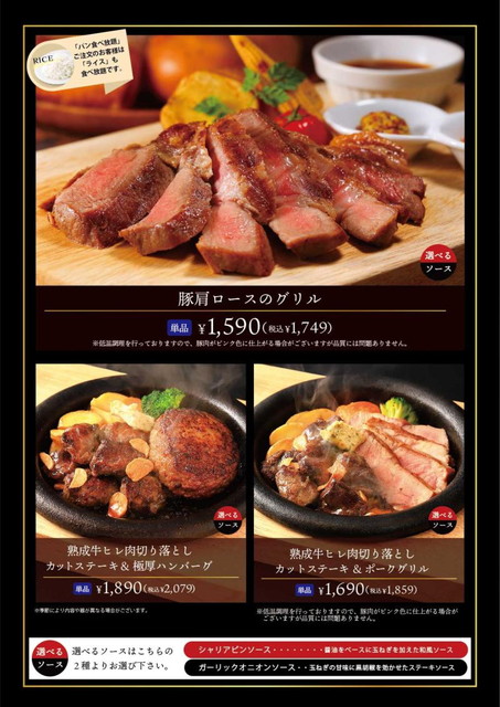 各種グリル料理+パン食べ放題が楽しめるお店です。